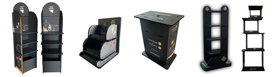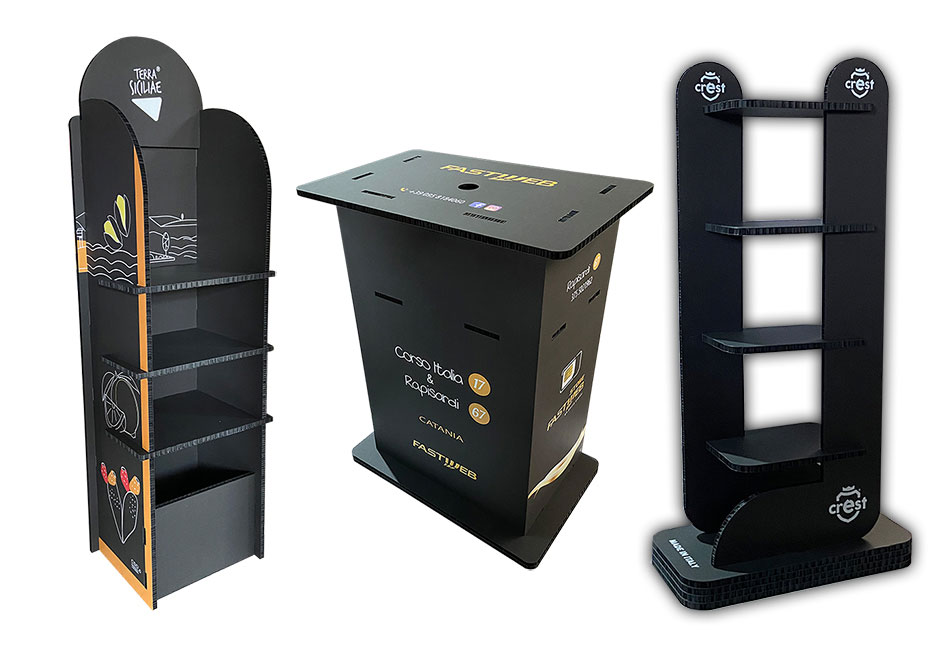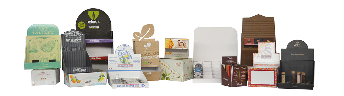 Il packaging può essere realizzato in ogni dimensione e forma, in base al prodotto; in cartoncino teso, che è la soluzione ideale per oggetti di dimensioni e peso contenuti; oppure in cartone ondulato accoppiato per oggetti di peso superiore.